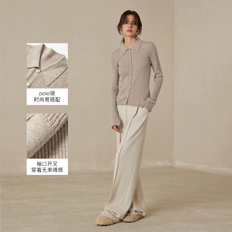 轻氧衫/MSLAN25秋冬法式翻领针织衫 修身坑条薄款内搭长袖开衫