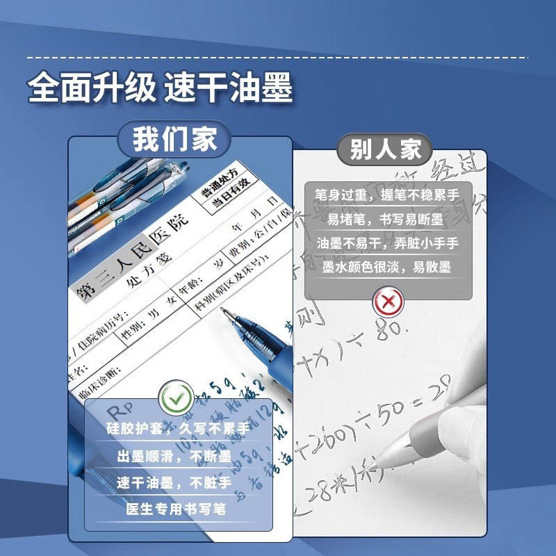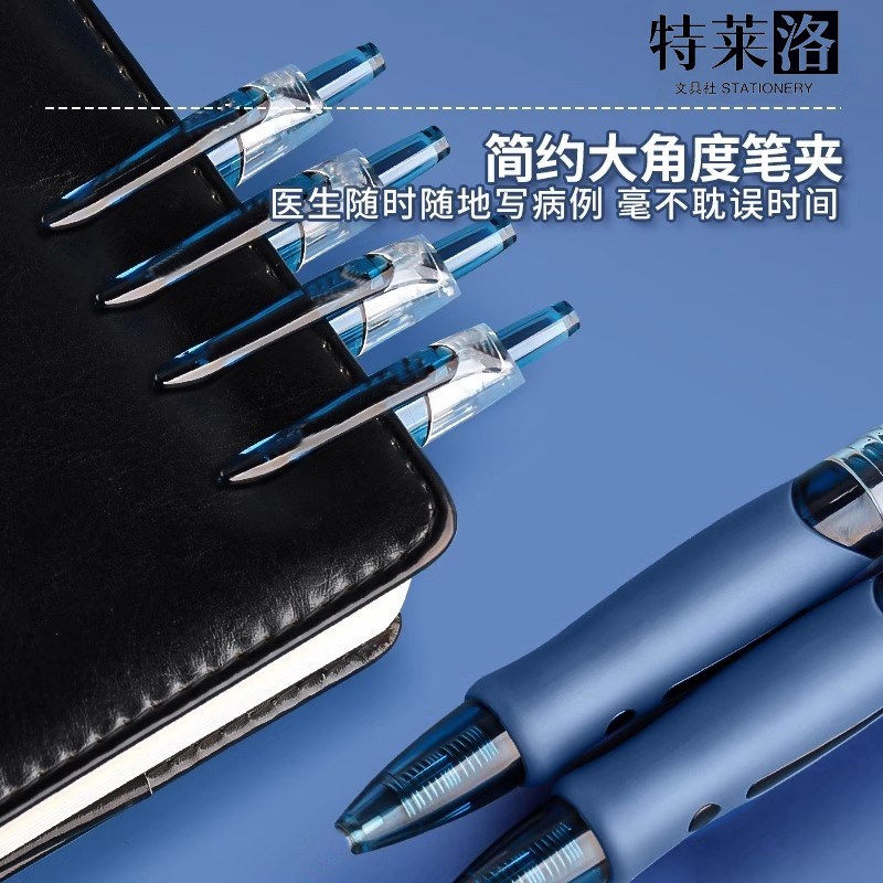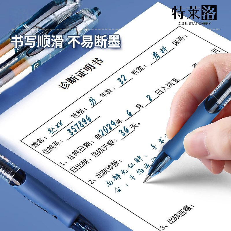 0.38MM医护专用按动中性笔蓝黑色速干st锥形笔尖墨蓝笔学生刷题笔