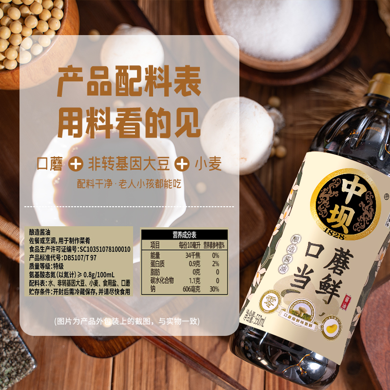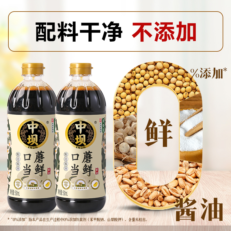 中坝口蘑当鲜酱油550ml*2瓶家用酱油酿造老字号中华老抽减盐头道