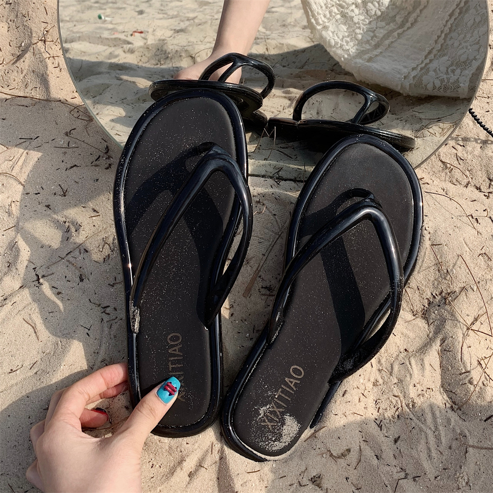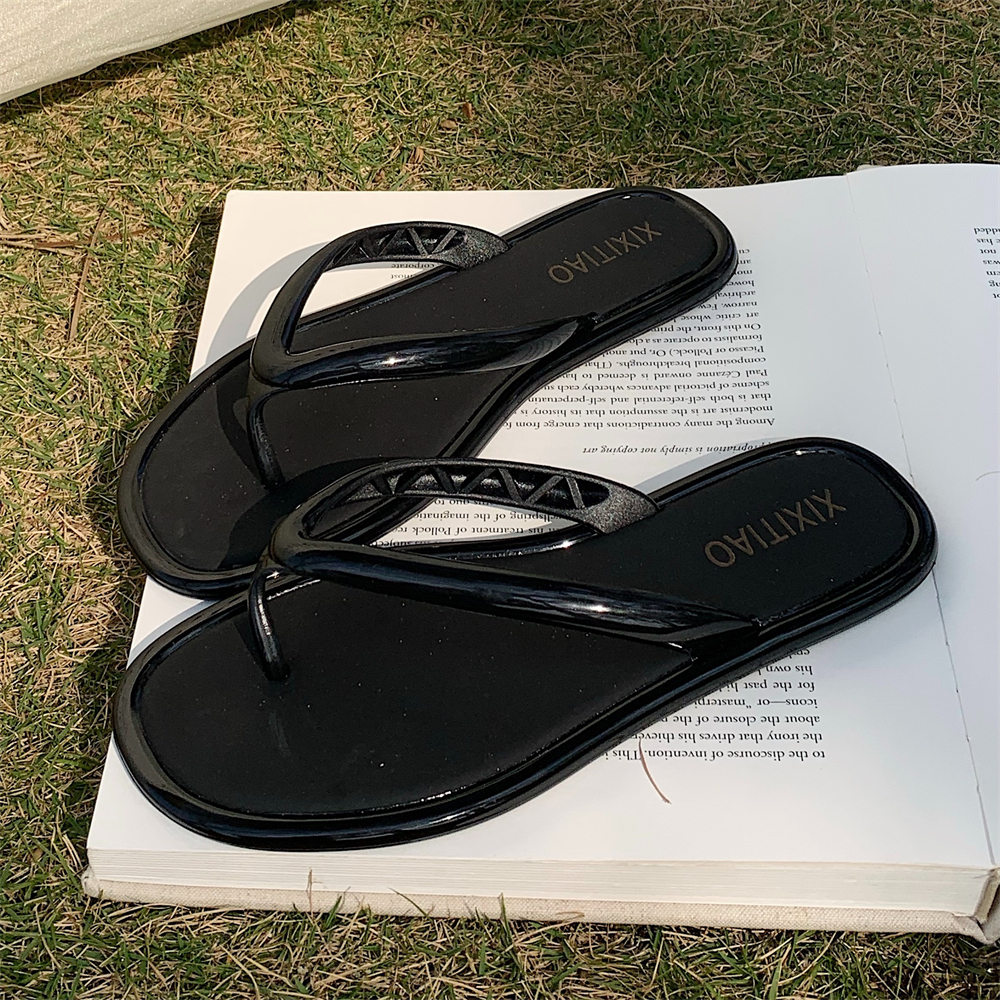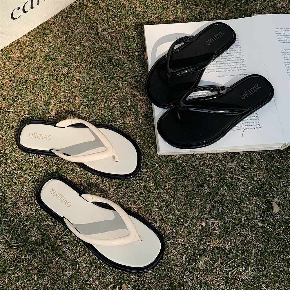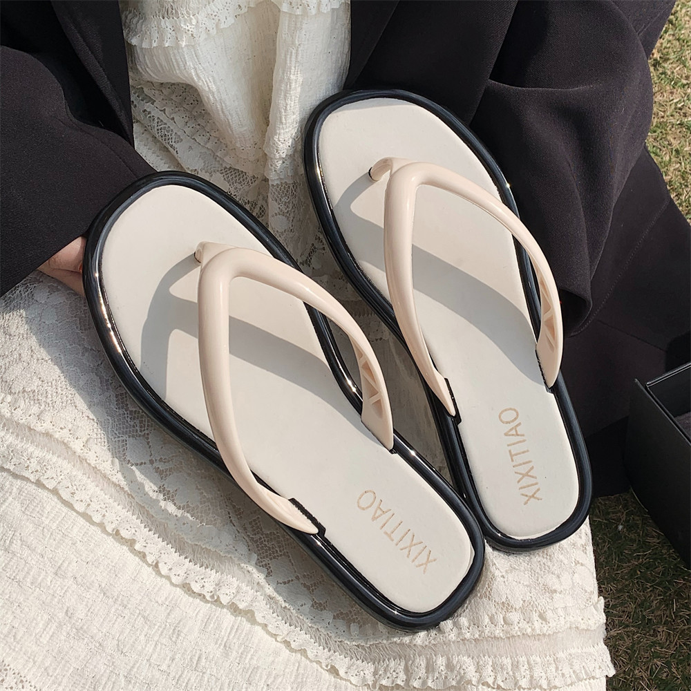 细细条 撞色高级感人字拖女夏季室外防滑时尚平底度假夹脚凉拖鞋