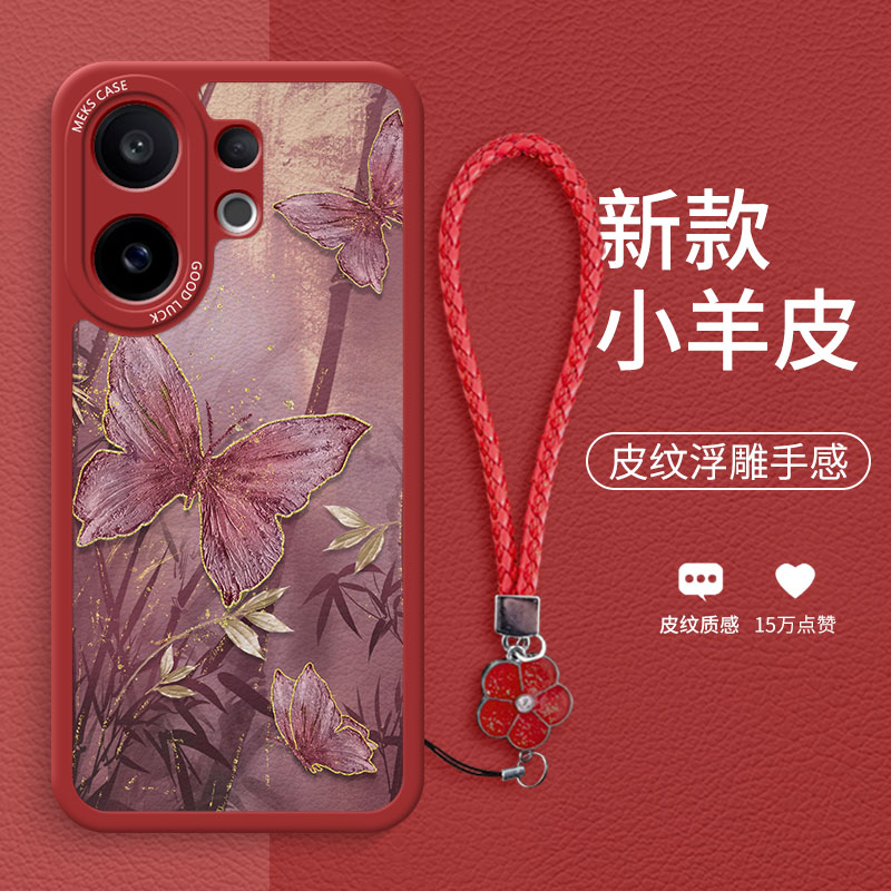 墨竹蝴蝶适用于vivoS30手机壳S30Promini新款S20新中式S20pro女款S19小羊皮硅胶S18全包防摔