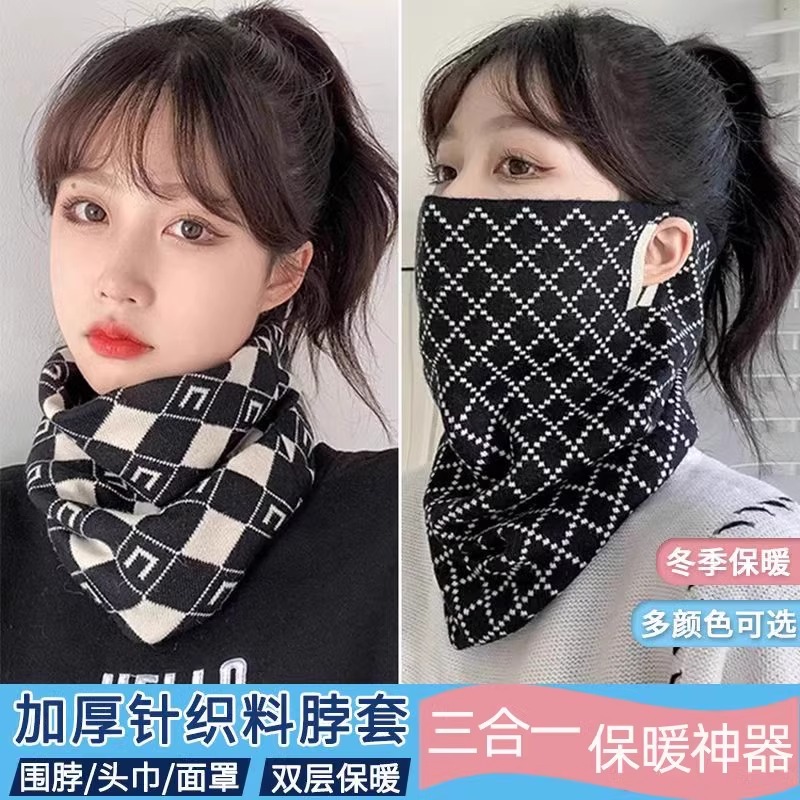 秋冬季围脖女士百变挂耳面罩保暖护颈脖套百搭围巾骑车防风男口罩