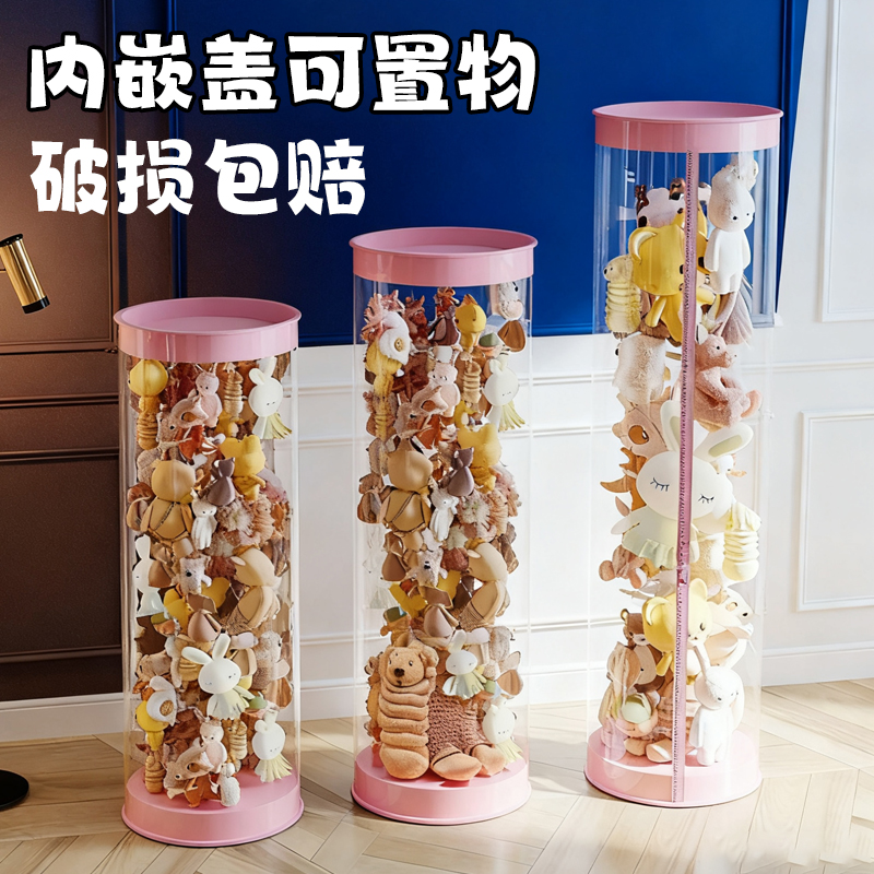 新款升级拉链娃收纳桶毛绒玩偶公仔儿童玩具透明筒收纳神器脏衣篮