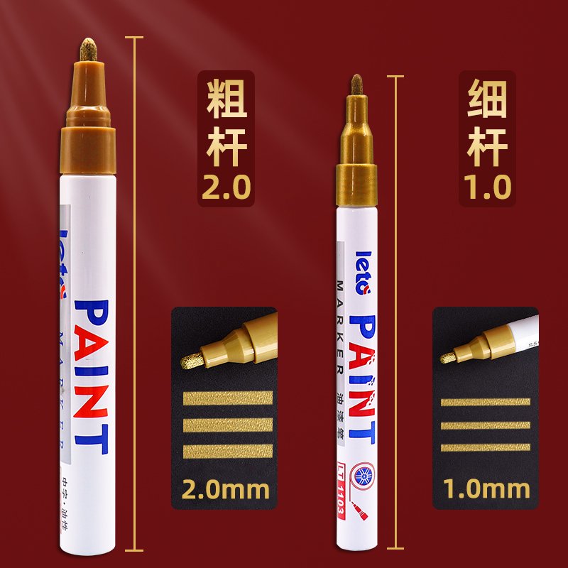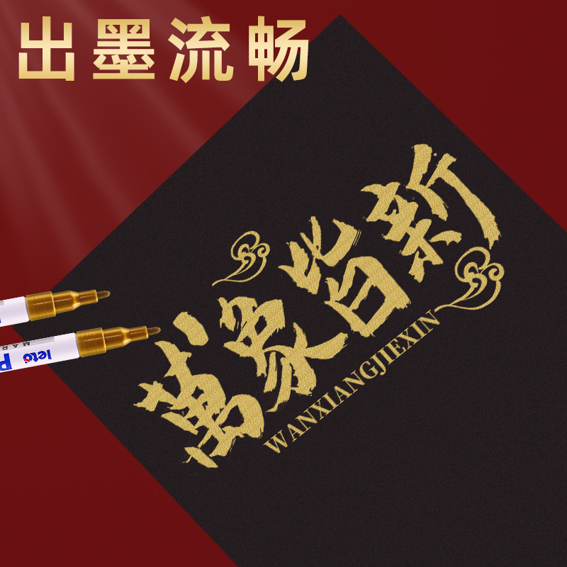 金色油漆笔加粗模型补漆笔金属镀金不掉色防水明星专用签字笔细2.0mm大容量油性记号笔签到笔描金笔涂鸦细头