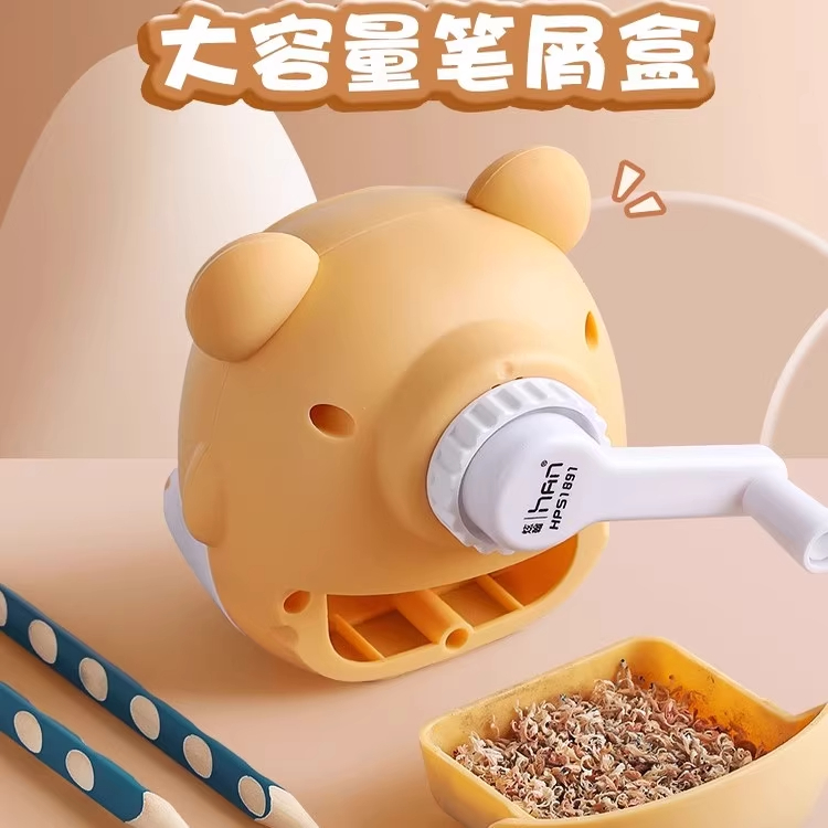 奶油小熊转笔刀削笔刀小学生专用手摇式自动进铅铅笔刀可爱简约幼儿园儿童削笔器一年级男孩女孩削笔机多功能