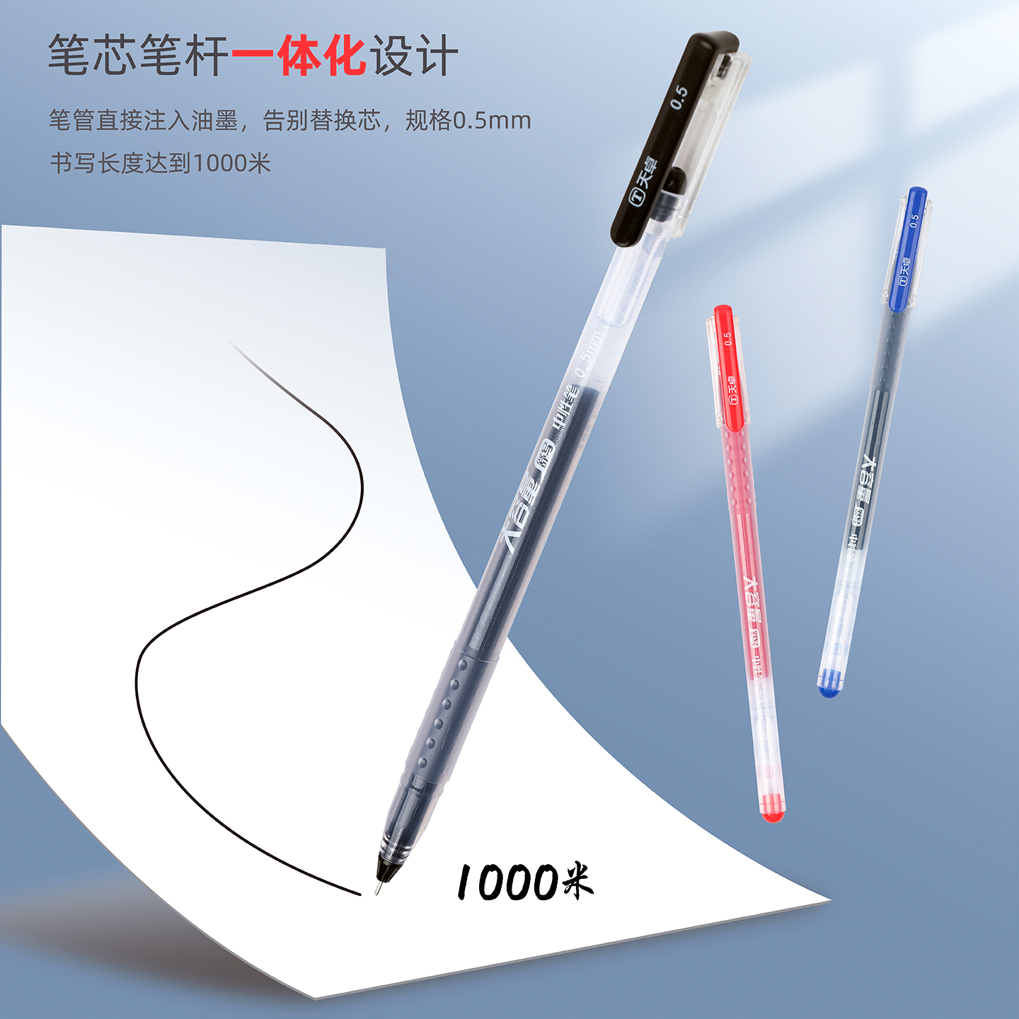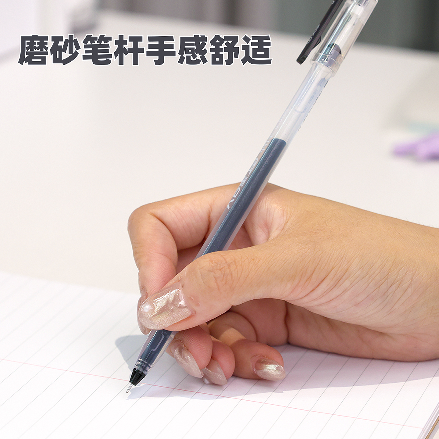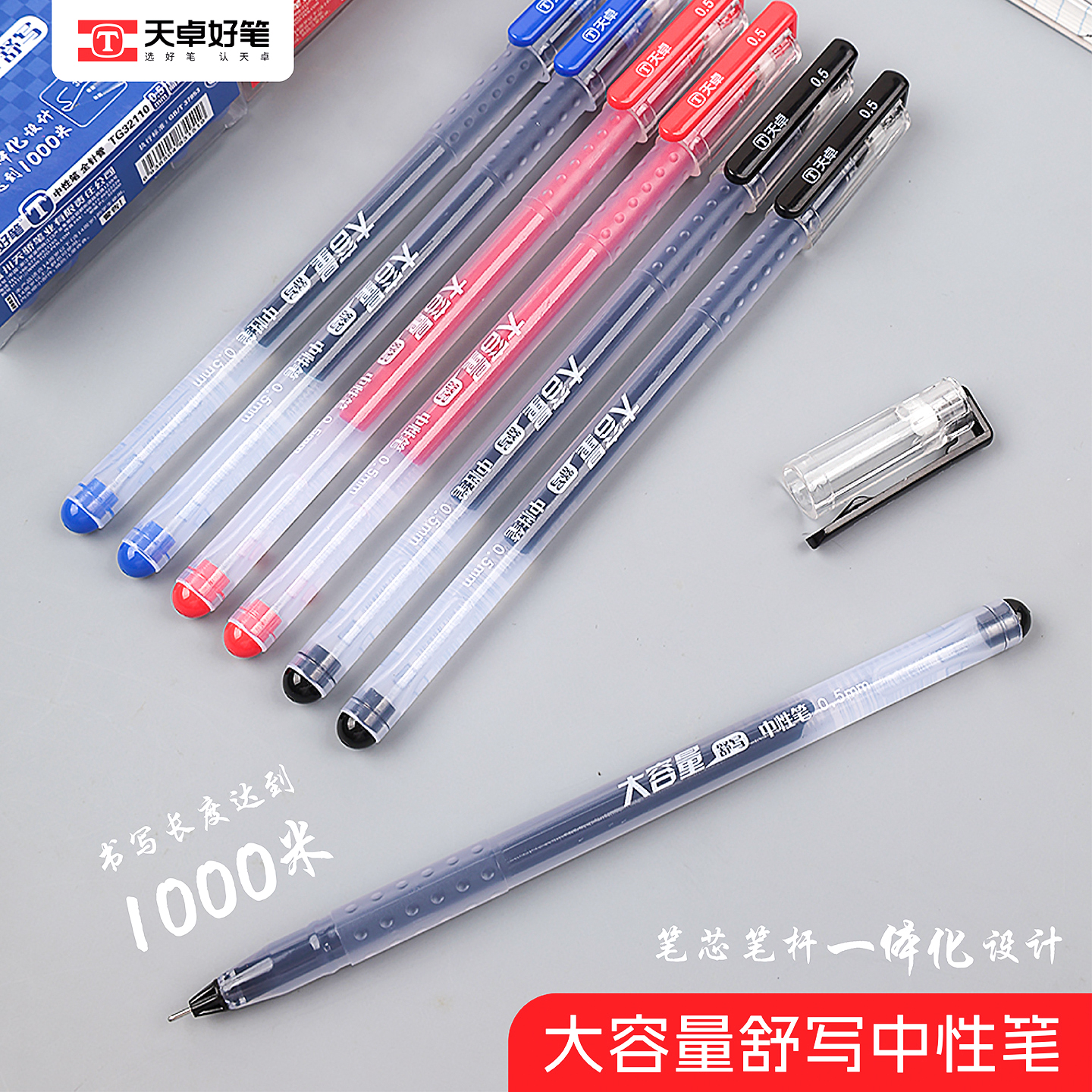 天卓大容量简约中性笔0.5针管黑色红色蓝色学生三年级书写ins风初中生12支盒装实惠款细杆直注墨出墨稳定顺滑