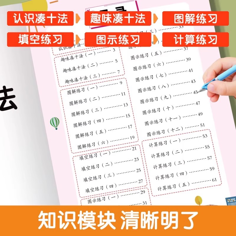 幼小衔接一年级数学图解凑十法借十法平十法破十法练习册10以内加减法思维强化训练数学口算应用题解决问题加减法天天练认识人民币