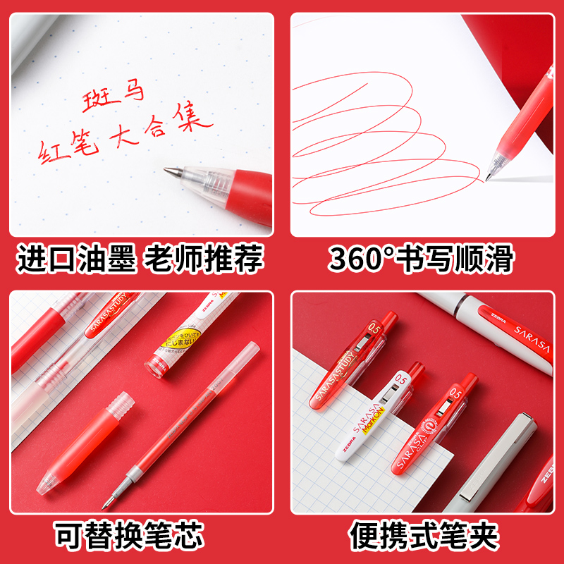 ZEBRA斑马笔jj15中性笔学生水性笔日系文具0.5按动速干签字刷题考试专用巨能写盒装日本斑马红黑笔旗舰官网