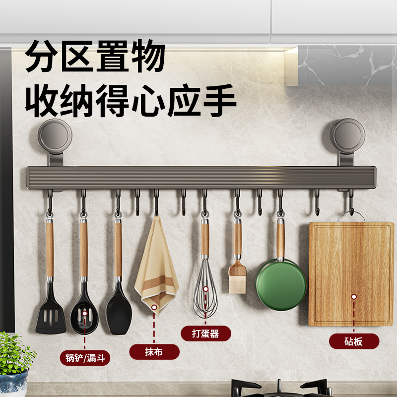厨房挂钩架挂杆免打孔壁挂式多功能厨具I挂架勺子锅铲保鲜膜置物