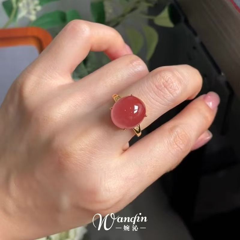 「赤姬朱华」新中式红色冰透蛋面戒指气质轻奢国风高颜值食指戒女