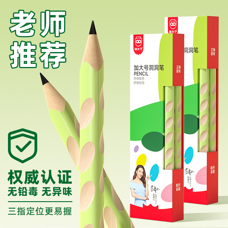 猫太子小绿杆加大号洞洞铅笔幼儿园小学生专用一二年级儿童矫正握姿加粗杆洞洞笔大三角无毒初学者HB2B练写字