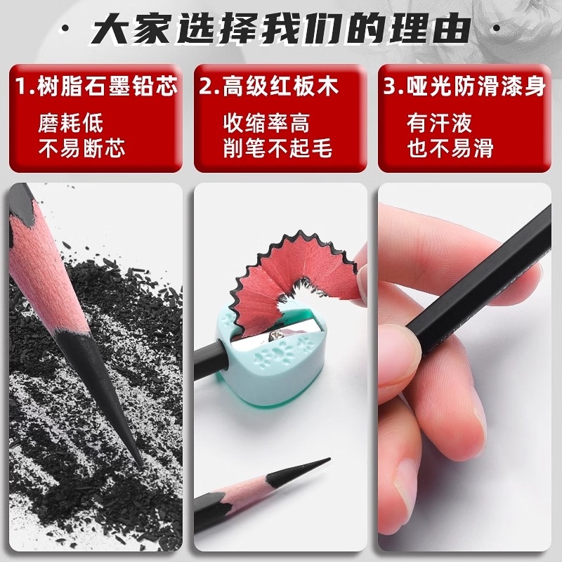 马利素描铅笔素描笔炭笔美术生专用14b套装4b绘画工具套彩色碳笔组合6b8b特软炭初学者专业速写入门制图哑光