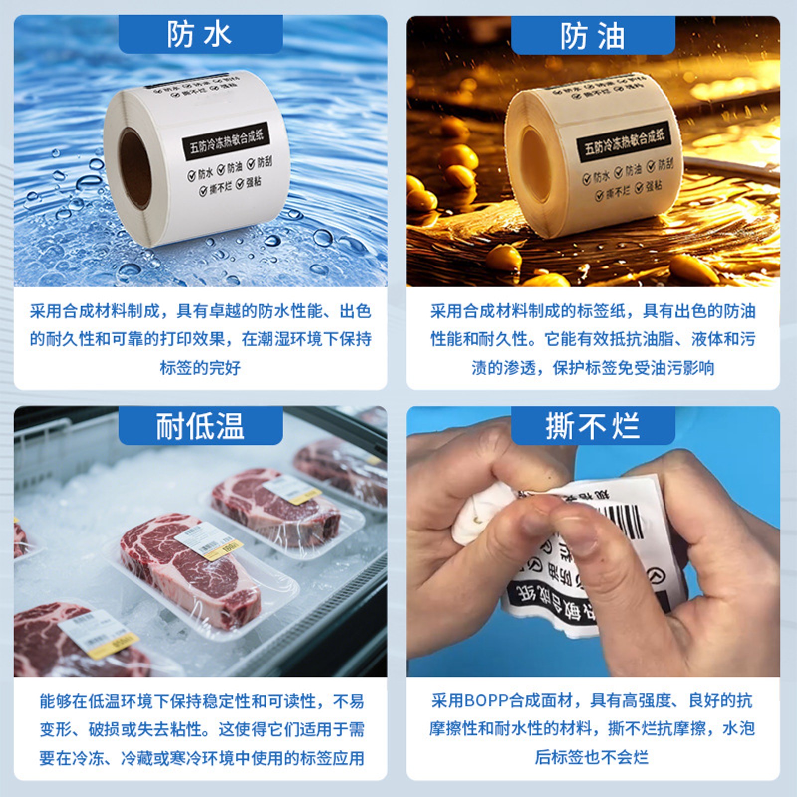 热敏不干胶标签纸打印机五防撕不烂贴纸冷冻防水pp合成纸条码防油