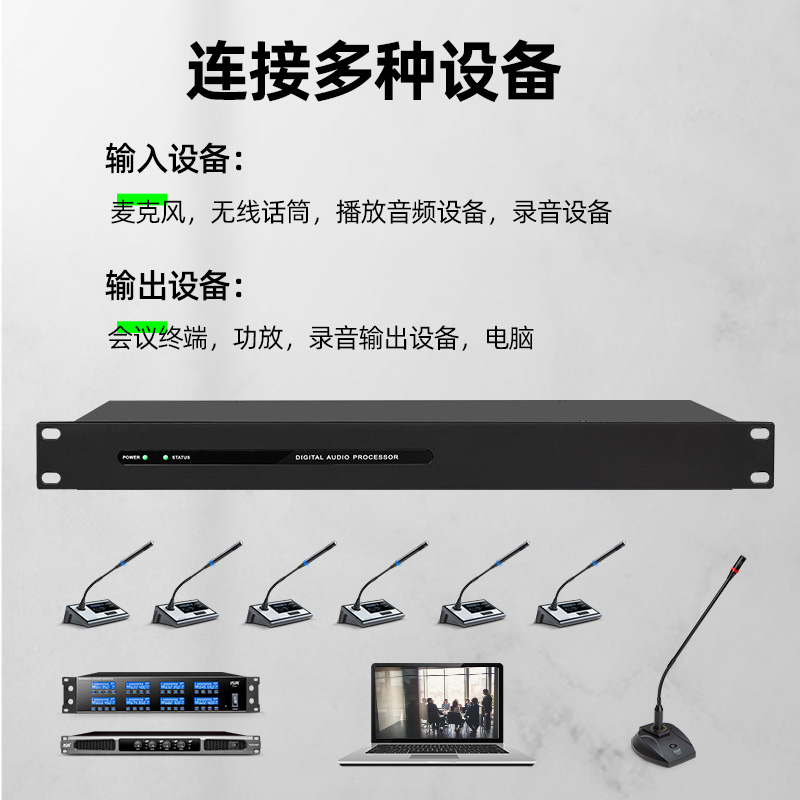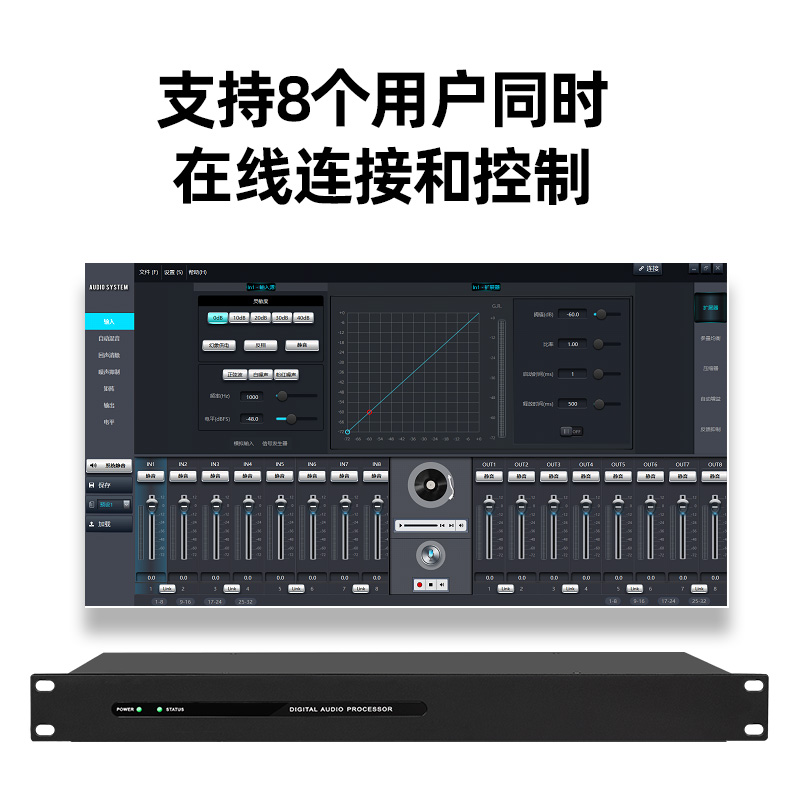 ISR8进8出数字音频矩阵会议工程网络音频处理器回声消除反馈抑制