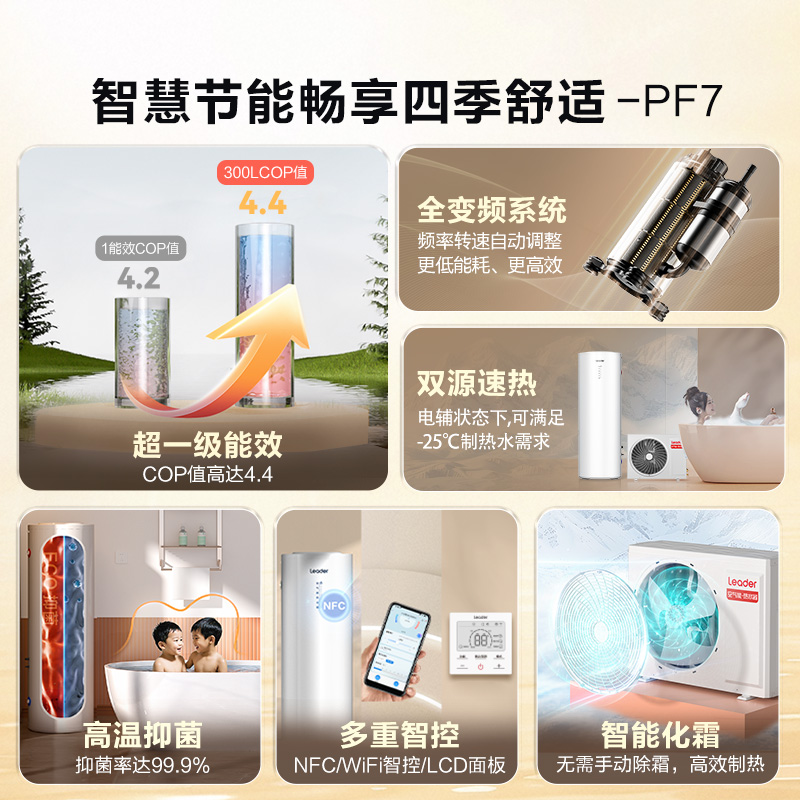 海尔智家统帅300L空气能热水器家用热泵2匹大容量新一级能效PF7