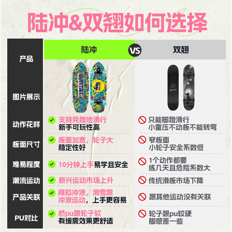 乐秀陆地冲浪板男女陆冲板成人滑板儿童路冲板初学滑板车6到12岁