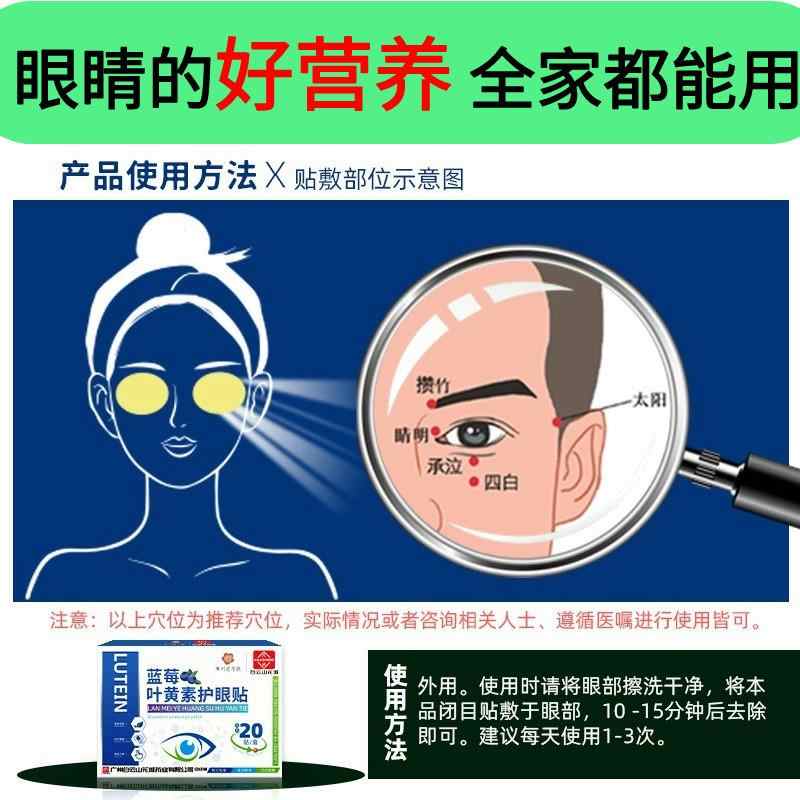 叶黄素蓝莓护眼贴缓解眼疲劳眼周干涩儿童青少年穴位冷敷润目明贴