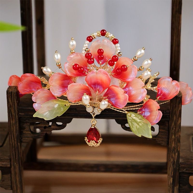 超仙清冷头冠发冠新中式古风汉服头饰牡花仙气妆造配饰古风发冠