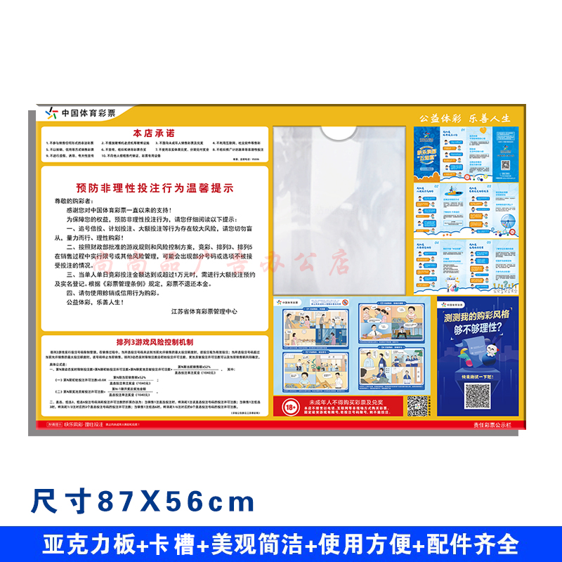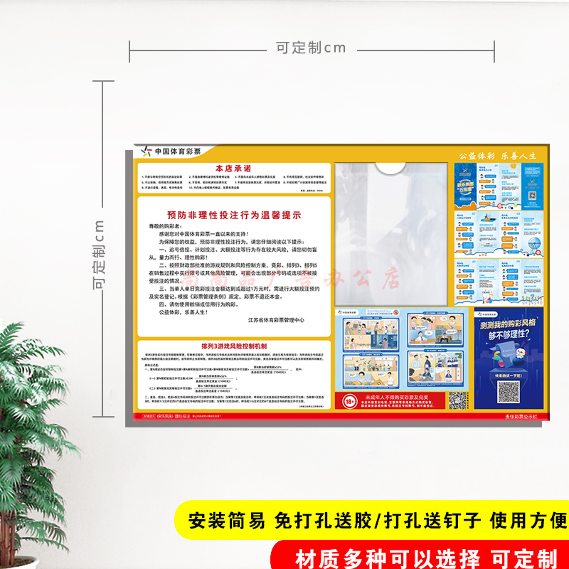 亚克力体育彩票店用品本店承诺预防非理性投注行为温馨提示信息栏