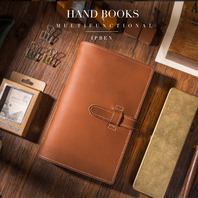 皮扣款复古拉链手帐本旅行活页夹记事本G多功能牛皮笔记本日记本A