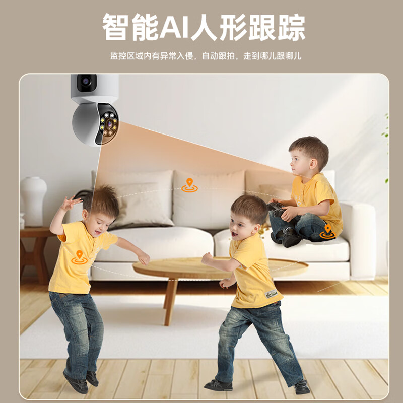 鸣胜家用监控摄像头双摄双画面带夜视全景360度无死角可对讲室内