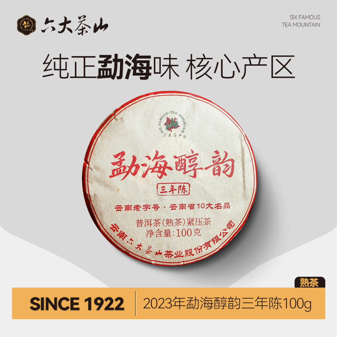 六大茶山三年陈勐海醇韵2023年云南普洱熟茶100g茶饼