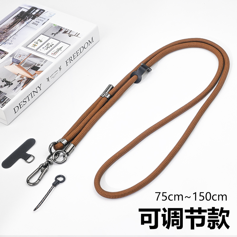 可调节高圆圆同款斜跨侧背可背式带加长挂脖挂肩吊绳宽高端带固定贴片卡片手机壳斜挎挂绳结实焦糖色防丢户外