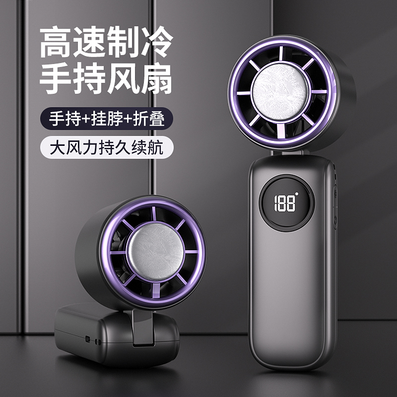 【所有女生的衣橱直播间】庞壳高速手持小风扇usb迷你便携式折叠挂脖风扇静音大风力夏天户外手拿风扇学生