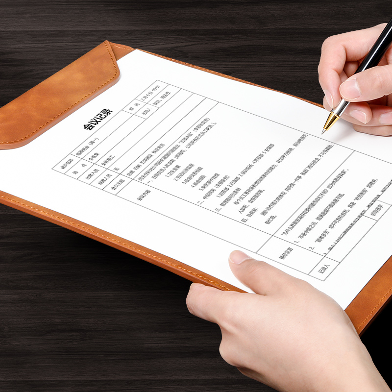 文件夹A4商务皮质会议夹磁性竖式酒店便签夹学生试卷收纳书桌手写字垫板餐厅菜单合同档案记录资料夹定制logo