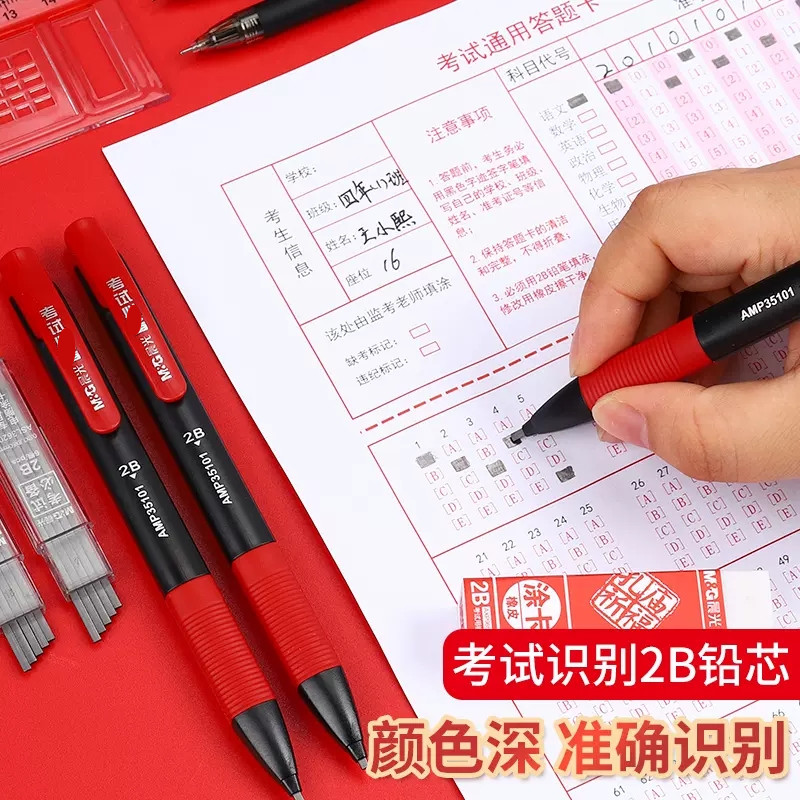 晨光小红杆铅笔2b小学生专用一年级二年级安全无铅毒卷笔刀橡皮六角笔杆易抓握学生考试用答题卡hb木杆涂卡笔