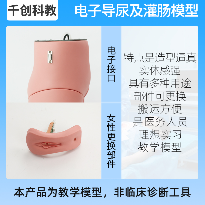 男女导尿灌肠训练模型电子光感反馈模块化解剖结构体位可调医学教具 尿道膀胱定位警示模拟尿液回流实训器材