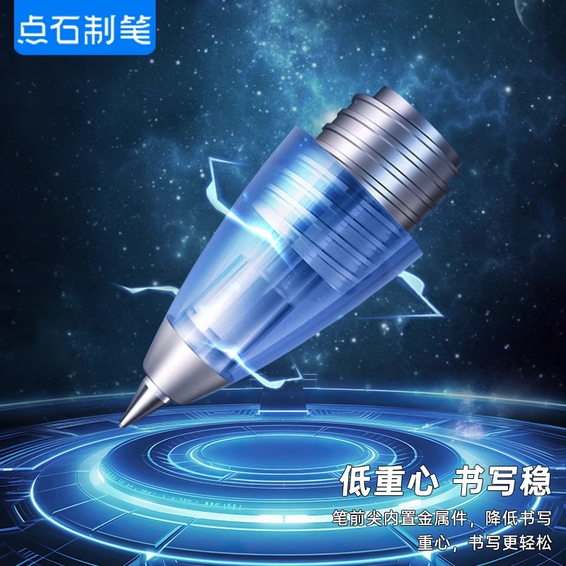 点石闪电时空舱中性笔0157静音按动黑色笔0.5子弹头高颜值太空舱低重心大容量顺滑速干学生刷题作业水笔新品
