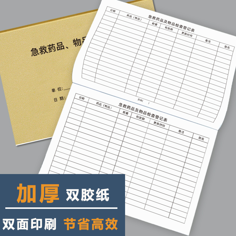 急救药品物品检查记录本急救车药品及物品检查登记簿报损过期药品销毁登记处方药品销售登记本医保刷卡记录本