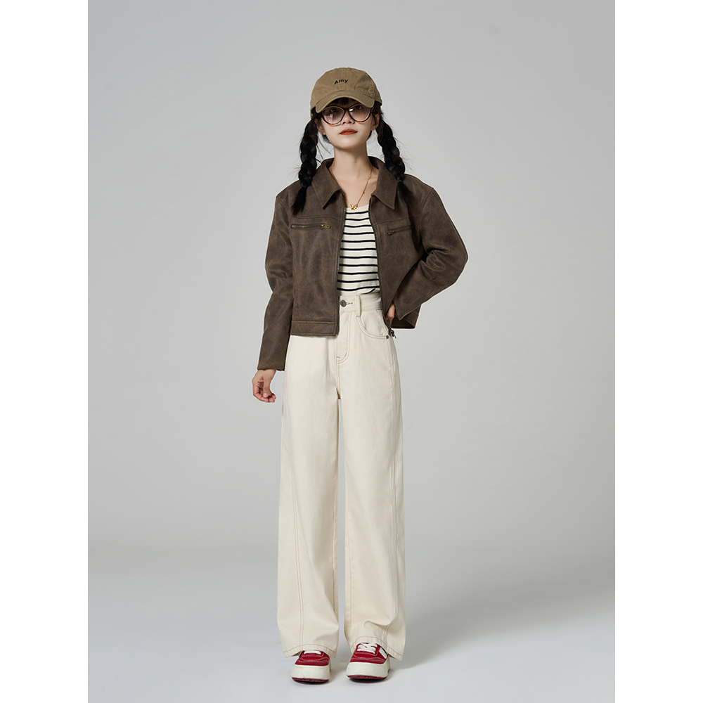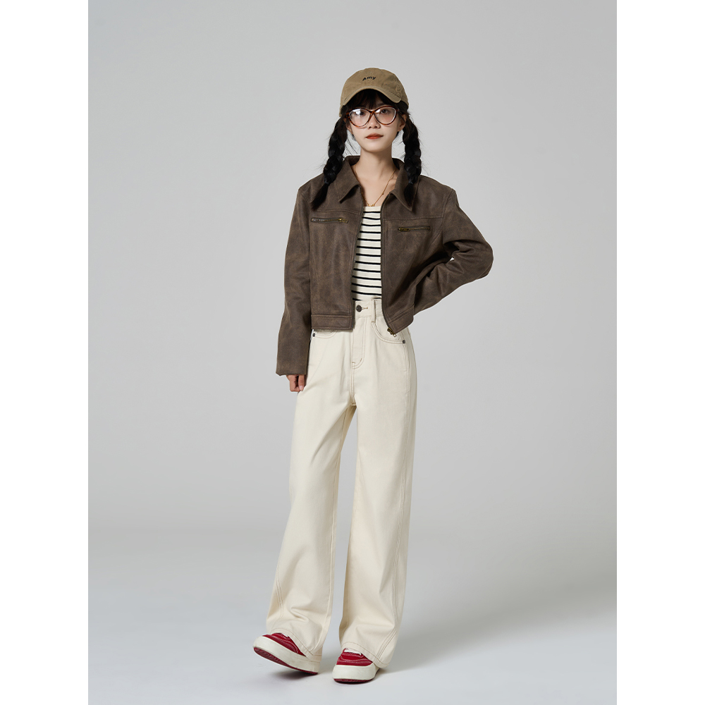 李李服饰米白色双扣丰胯微喇牛仔裤女2025秋季新款弹力显瘦长裤子