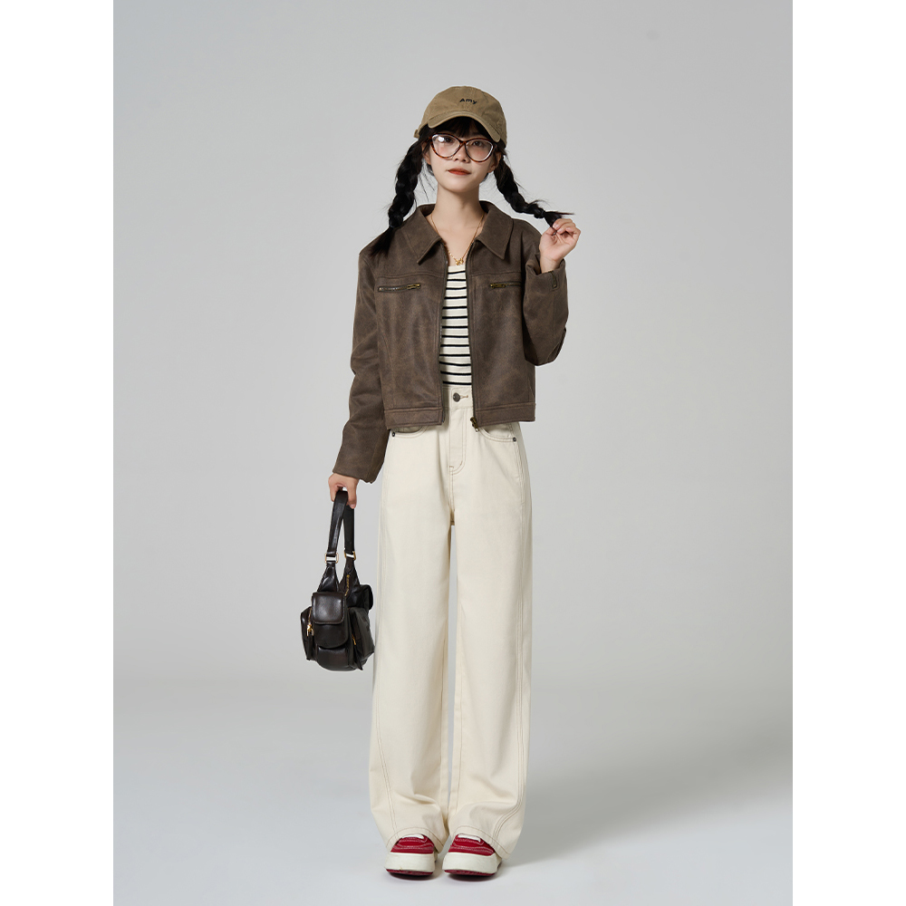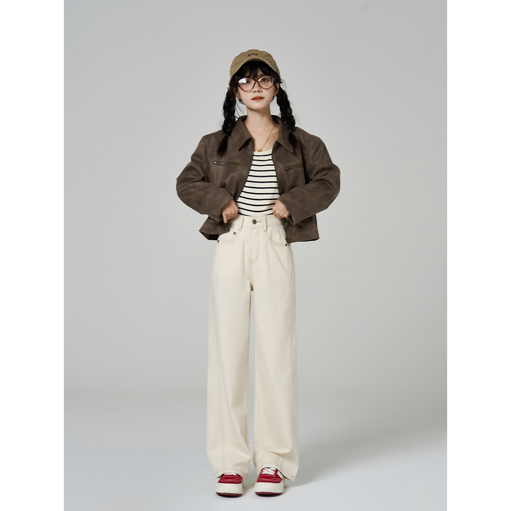 李李服饰气质白色高腰阔腿牛仔裤女2025年秋季显瘦显高休闲拖地裤