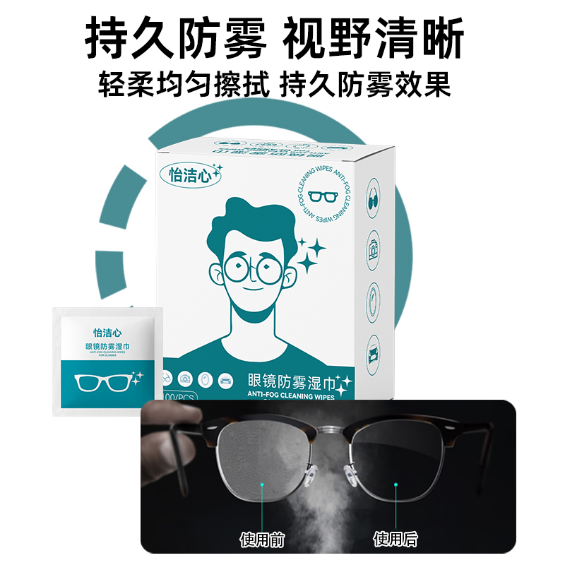 怡洁心眼镜防雾清洁湿巾一次性眼睛布专用擦拭纸冬天镜头不伤镜片