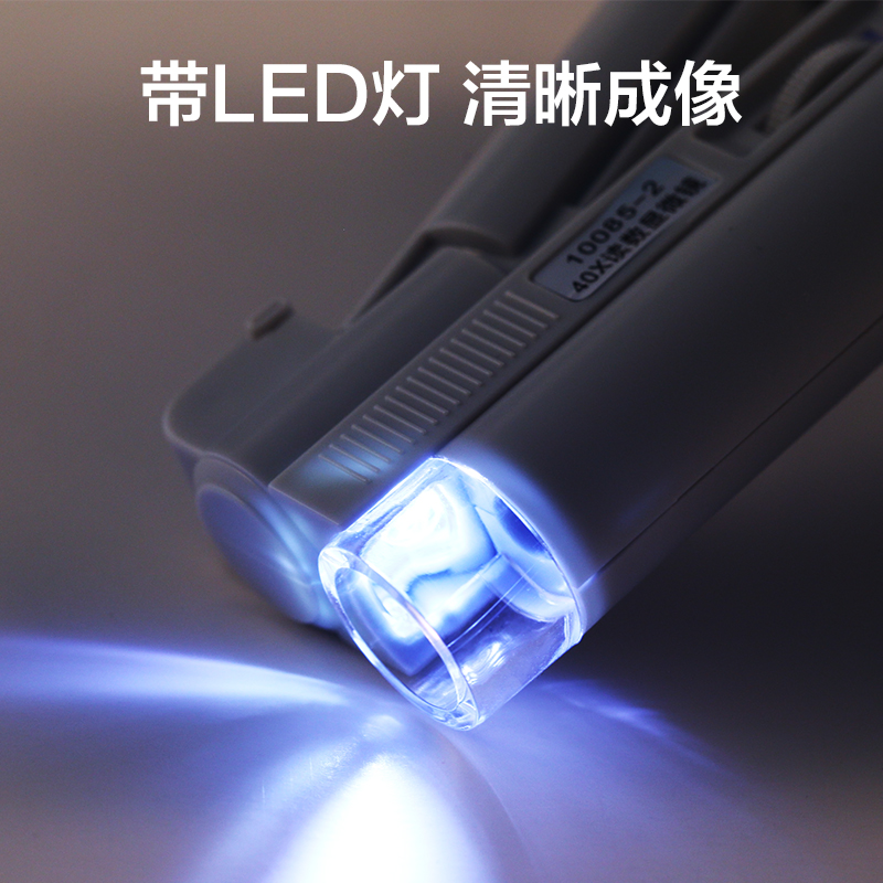天屿 150高倍手持放大镜带LED灯100倍高清纺织印刷网点用40/80倍鉴定专业用便携式珠宝科学生儿童显微镜手机