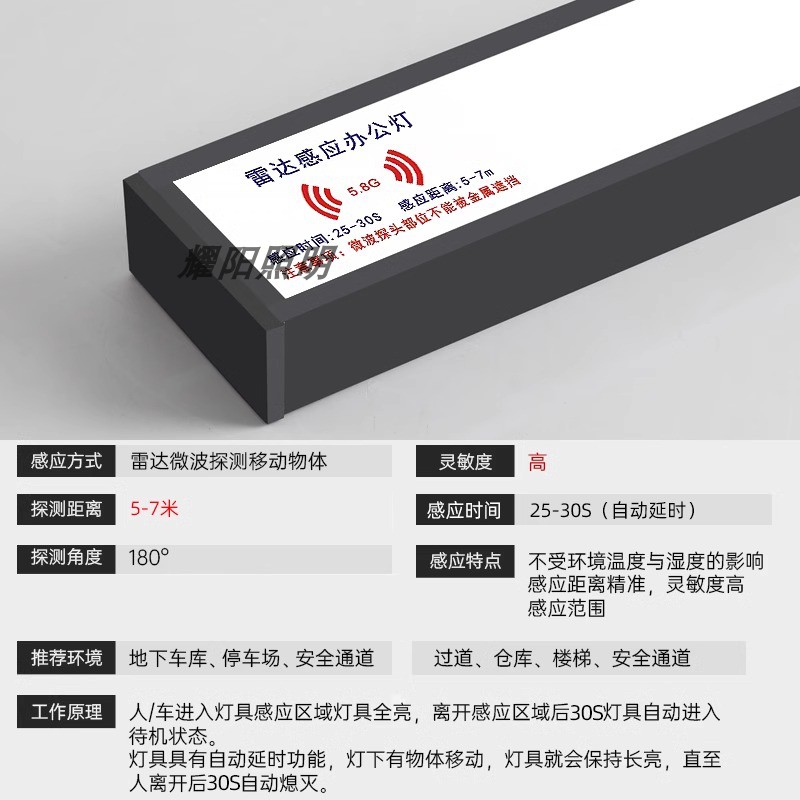 车库专用雷达感应线条灯地下停车场过道人体智能感应长条灯吊线灯