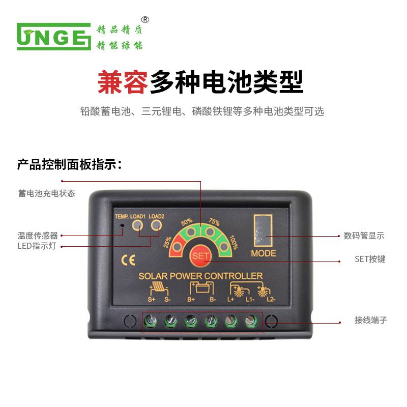 离网太阳能充电控制器12V24V自动识别5A10A15A20A铅酸锂电池通用