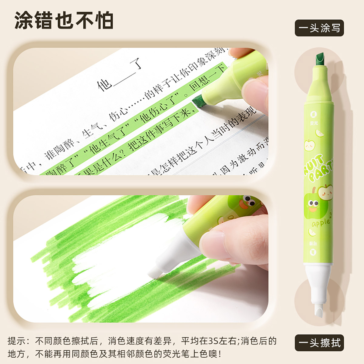 可擦荧光标记笔小学生高颜值彩色记号笔考试划重点手帐手抄报专用双头银光莹光黄色可擦萤光色笔划线画标记笔
