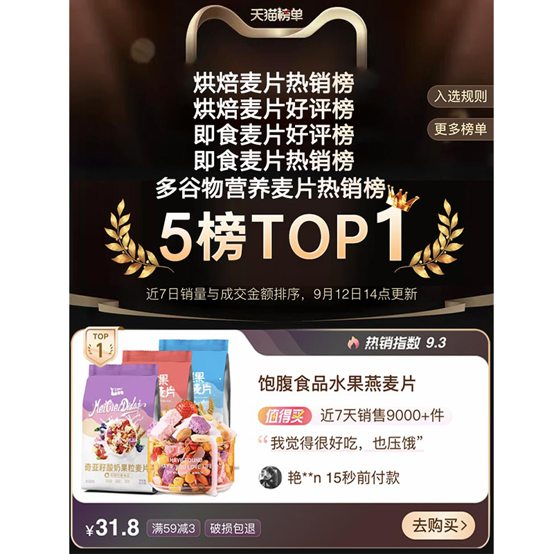 【热卖】卡乐比水果坚果燕麦片早晚餐进口冲饮泡营养谷物懒人即食  桂格即食燕麦片1478g*1袋装早餐冲饮营养谷物代餐原味麦片  【下拉领优惠】桂格原味即食燕麦片1000g*2罐麦片早餐冲饮饱腹健  家乐氏进口儿童麦片早餐巧克力可可球谷物圈营养燕麦片即食冲饮  西麦纯燕麦片1000g*3袋营养早餐即食冲饮速食免煮代餐饱腹食品  桂格五谷十珍礼盒5红5黑即食麦片中秋送礼健康营养真材实料元气滋  【橙姐同款麦片】穗格氏高纤即食黑麦片健身代餐营养早餐燕麦片  【节日礼盒】西麦燕麦核桃粉礼盒1kg中老年营养品送长辈健康礼FG  桂格即食燕麦片原味1000g早餐冲饮营养谷物免煮懒人饱腹代餐麦片  ohmyfood冻干巴西莓天然可可粉燕麦碗即食冲饮代餐燕麦片  【自营】卡乐比水果燕麦片早餐进口即食冲饮酸奶谷物原味550g坚果  五谷奈儿燕麦片紫薯黑米藜麦片营养早餐即食冲饮牛奶冲泡代餐即食  雀巢KITKAT奇巧即食麦片330g巧克力谷物脆进口全谷物非油炸零食  家乐氏儿童麦片营养早餐谷脆格谷物圈泡牛奶巧克力燕麦片即食冲饮  【98选4】家乐氏儿童谷物圈代餐早餐冲饮麦片可可泡牛奶营养谷物  【推荐尝鲜】好麦多水果酸奶桃桃果粒燕麦片105g早餐草莓便携k