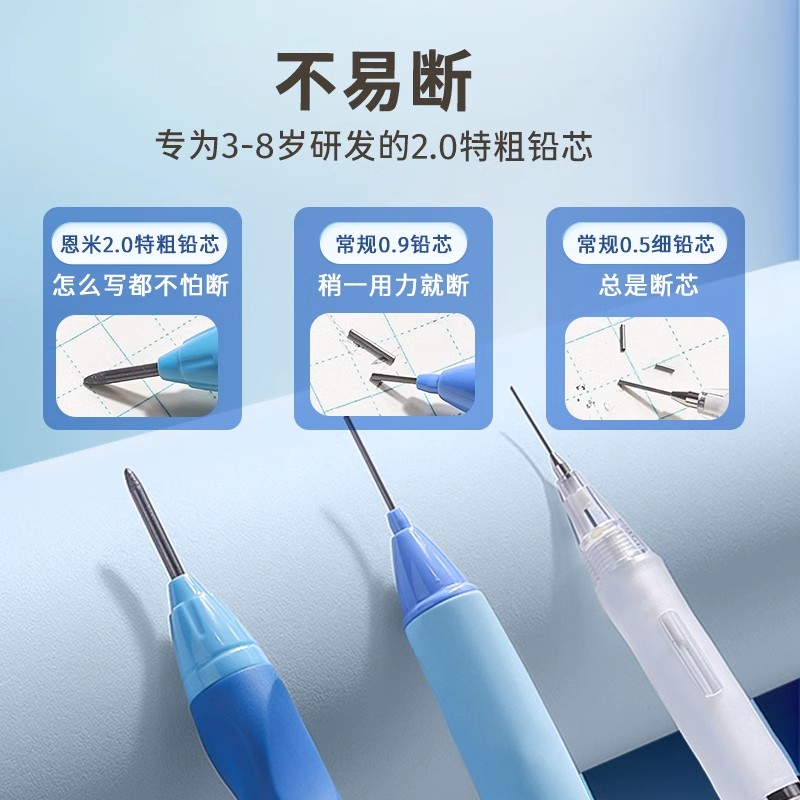 恩米小学生高颜值自动铅笔2.0儿童练字一二年级洞洞幼儿园初学者专用正姿矫姿粗铅笔握笔铅芯笔按动控笔训练