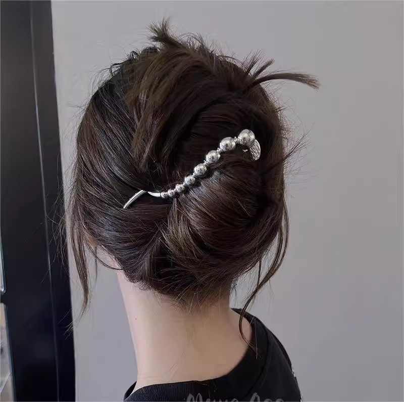 质感网红韩系温柔小众高级清新圆珠扭扭夹显白简约ins2023气质时
