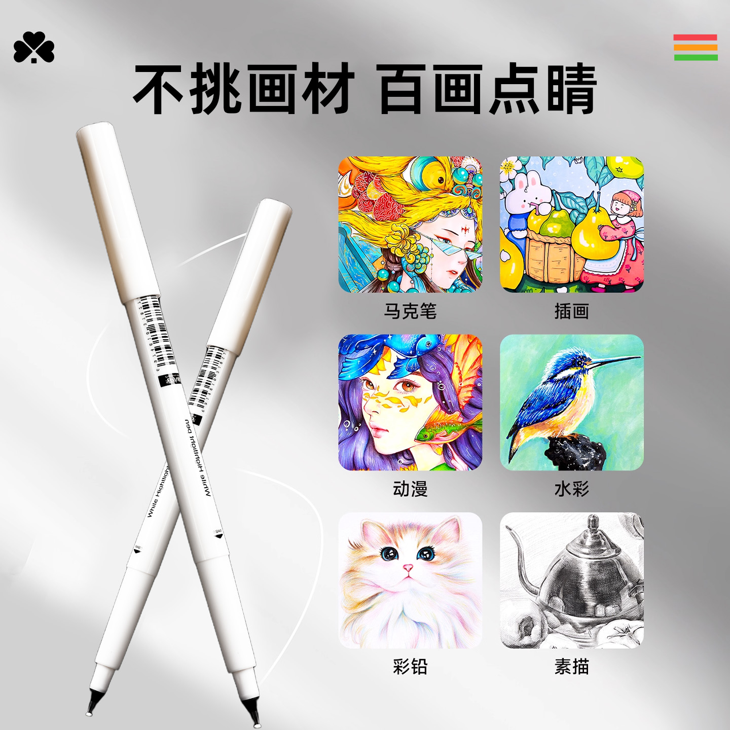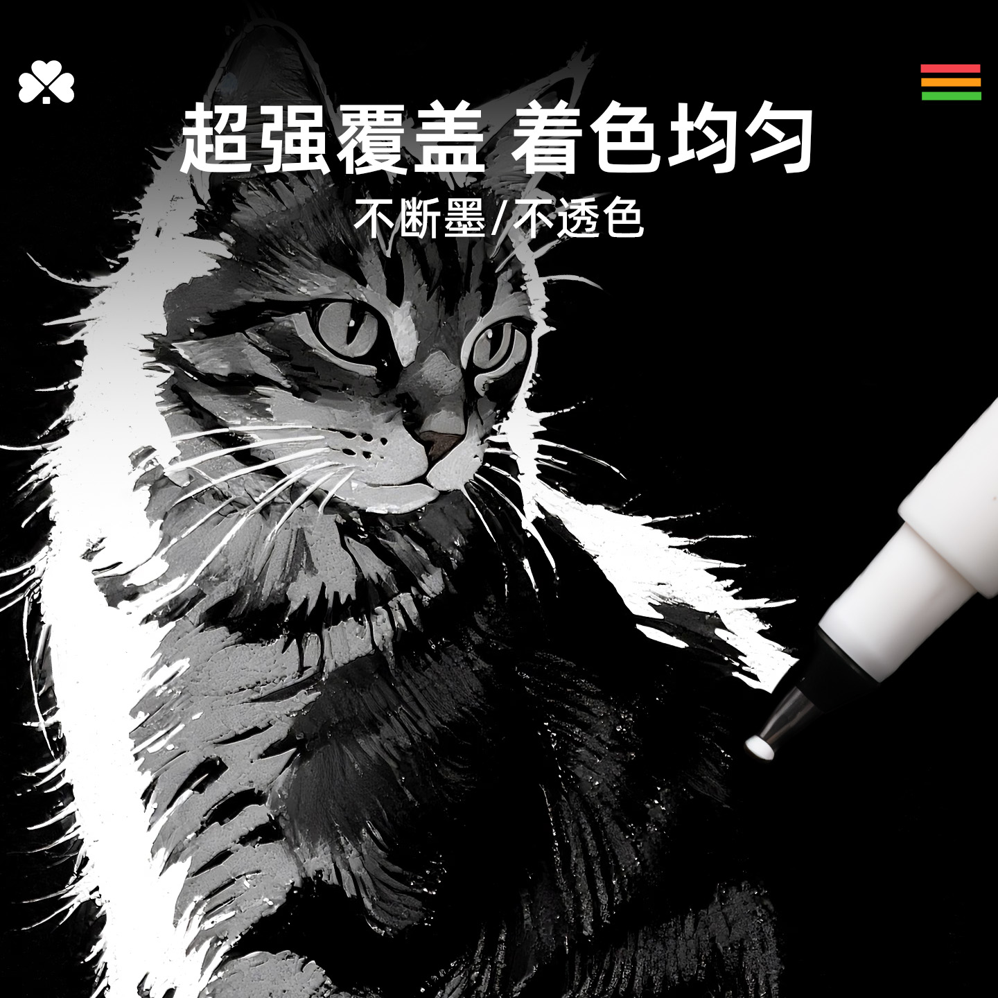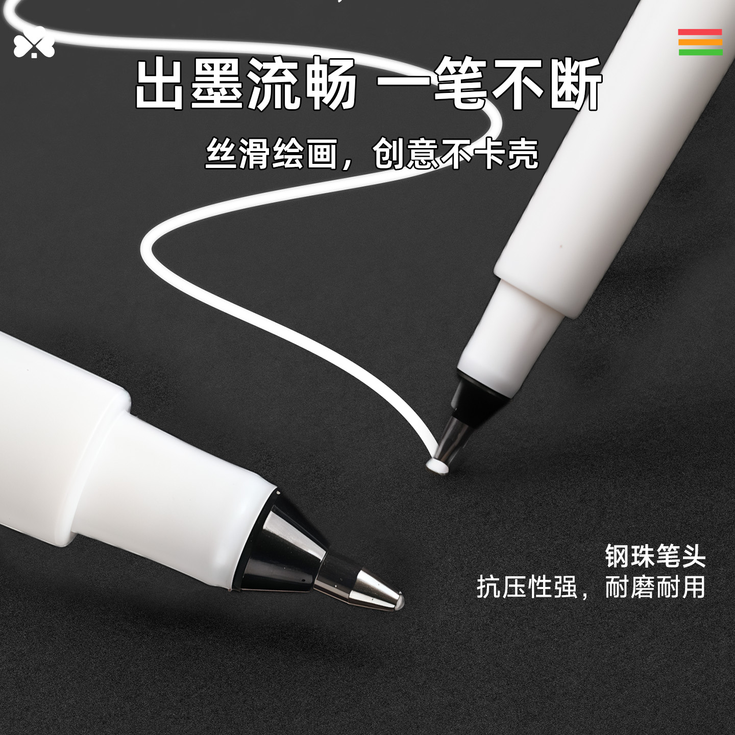 白色高光笔美术专用圆珠笔勾线笔记号笔细头中性笔不掉色防水速干液体水笔绘画钩边笔压痕笔素描长头笔画画笔