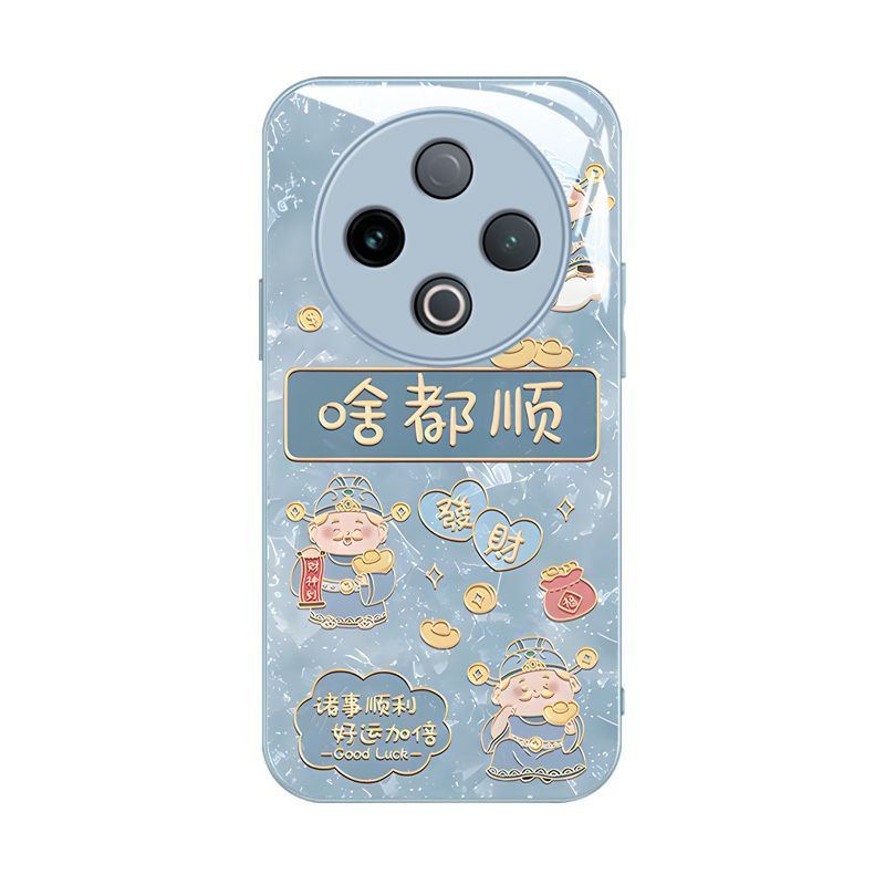 适用vivoY500手机壳玻璃V2506A啥都顺viv0y500保护套vlvo全包边防摔5g新年款财神喜庆vivi高级oppo网红好看女