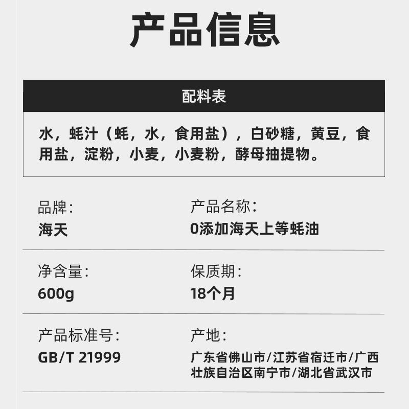 海天蚝油0添加上等600g挤挤装家用炒菜烧烤拌馅提鲜增味调味品料