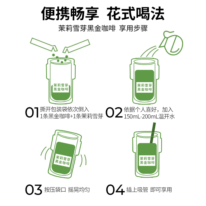 茉莉雪芽黑金咖啡进口冻干速溶咖啡轻乳奶茶袋装饮料雀蜂官方正品