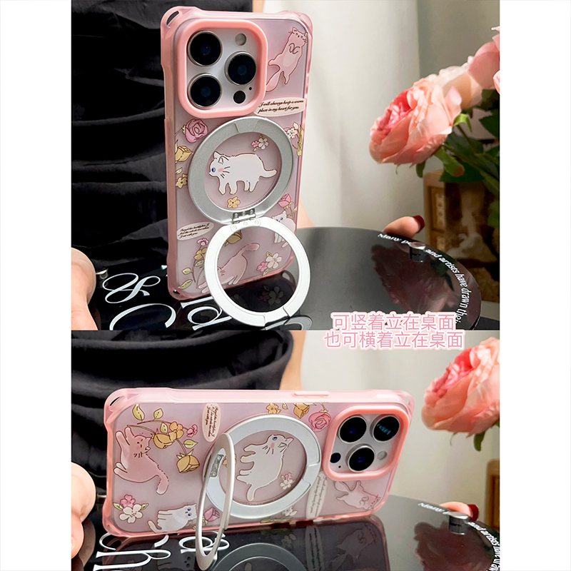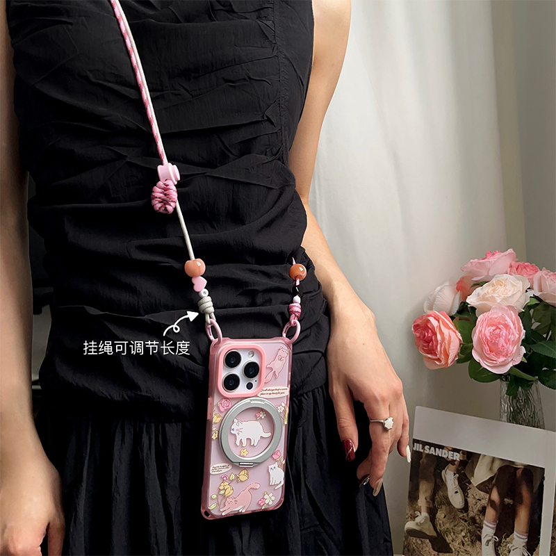 【秘密花园】360度旋转支点壳适用于苹果16pro手机壳粉猫咪pura80背带斜跨小米15调节挂绳vivox200s链条斜挎