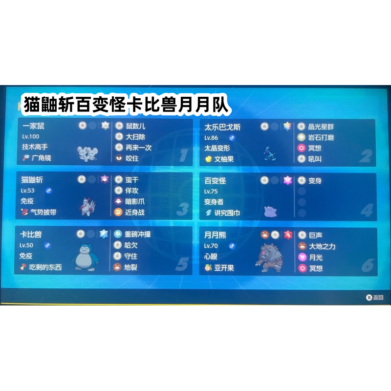 switch宝可梦朱紫规则I单打队伍猫鼬斩百变怪卡比兽月月队6元