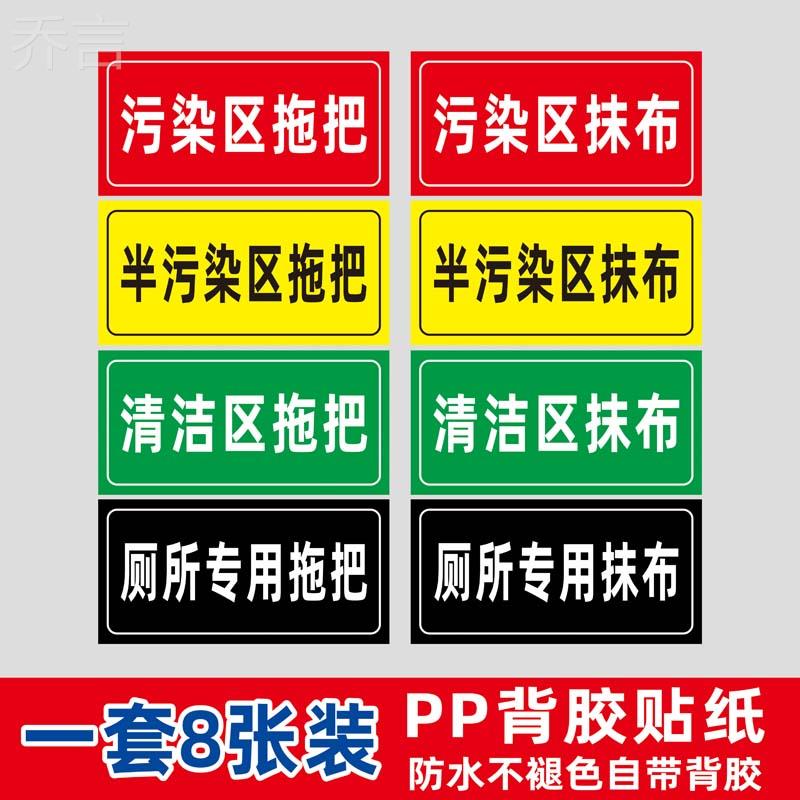 病区医院感染区半污染区专用拖把抹布分区域分类提示贴纸定制毛巾拖把分类放置标牌清洁工具存放处分区标识牌
